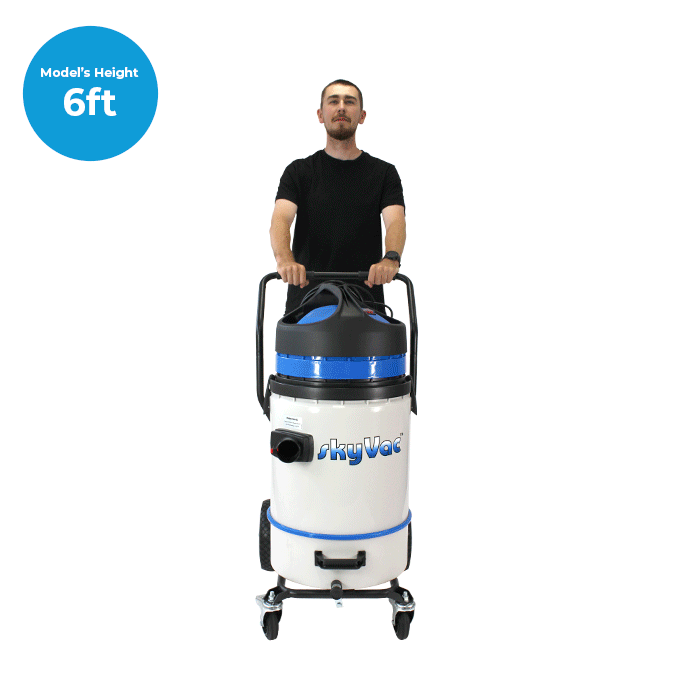 Robust and lighter than a standard steel drum! Mounted on a sturdy steel trolley, the skyVac Commercial Plus has oversized all-terrain rear wheels for stability. The vacuum also has multi-directional front castors, making it easy to move over uneven ground. The front castors are lockable, enabling you to park your vacuum on hills, slopes, and even in the back of your van.